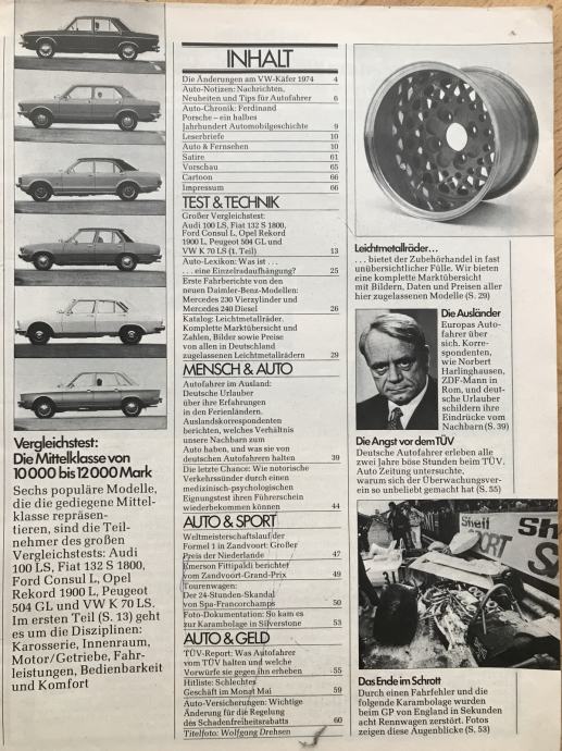 Audi 100 vs VW K70 vs Fiat 132 1800 vs Ford Consul vs Opel Rekord vs Peugeot 504, na 12 str