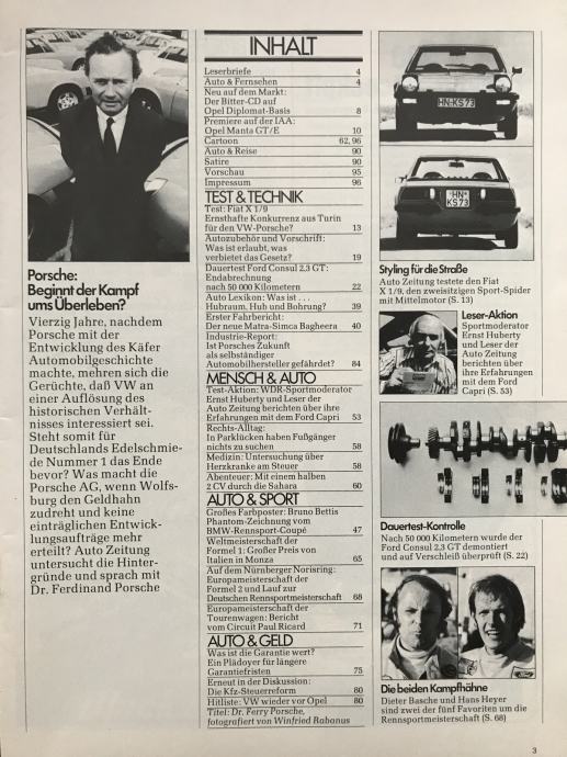 Auto Zeitung 1973. intervju s Ferry Porsche (sin od Ferdinanda) na6str