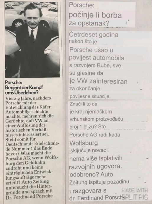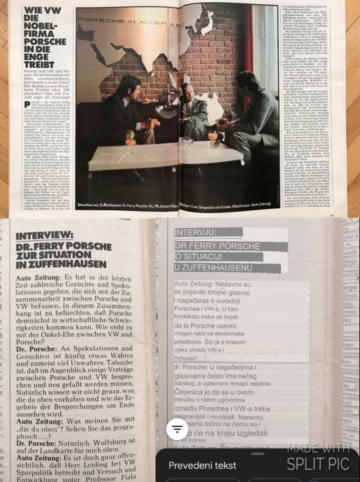 intervju s Ferry Porsche - direktorom (i suvlasnikom) Porschea od 1946. do 1989. god, na 6 str