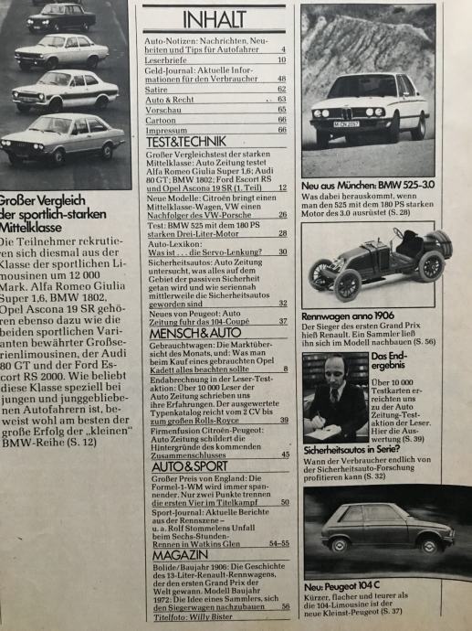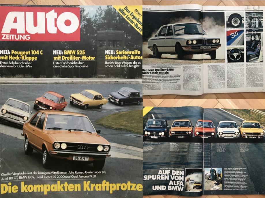 Auto zeitung`74.test:BMW M525 3.0 +1802 vs Escort RS vs 80GT vs Ascona
