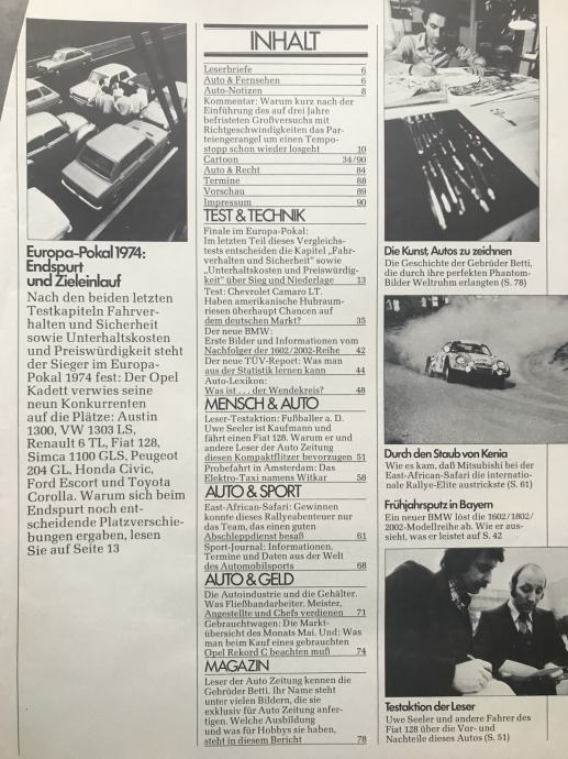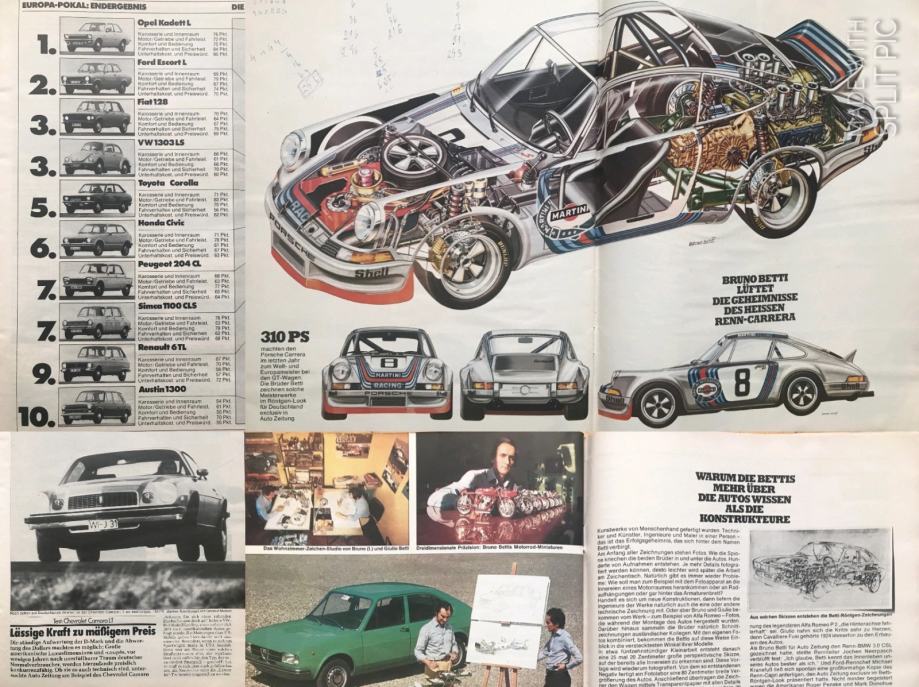Auto Zeitung‘74. test:Camaro +crteži Bruno Betti s posterom P911 +Scir