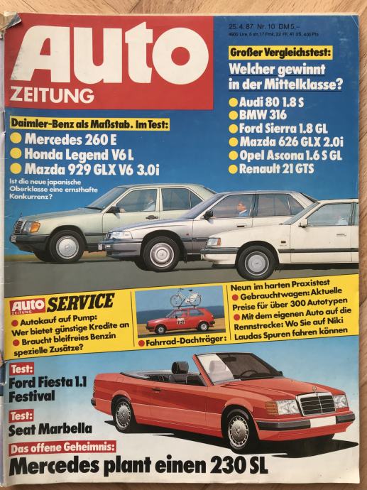 Auto zeitung`87. BMW316 vs A80 vs još 4auta +MB260E vs M929 vs HondaV6