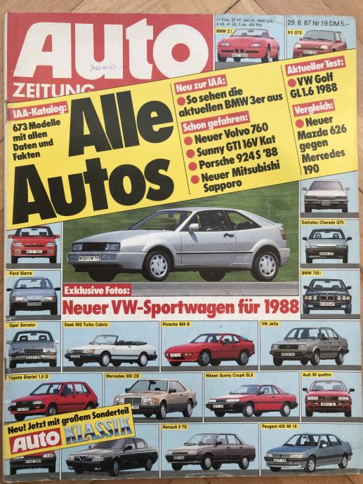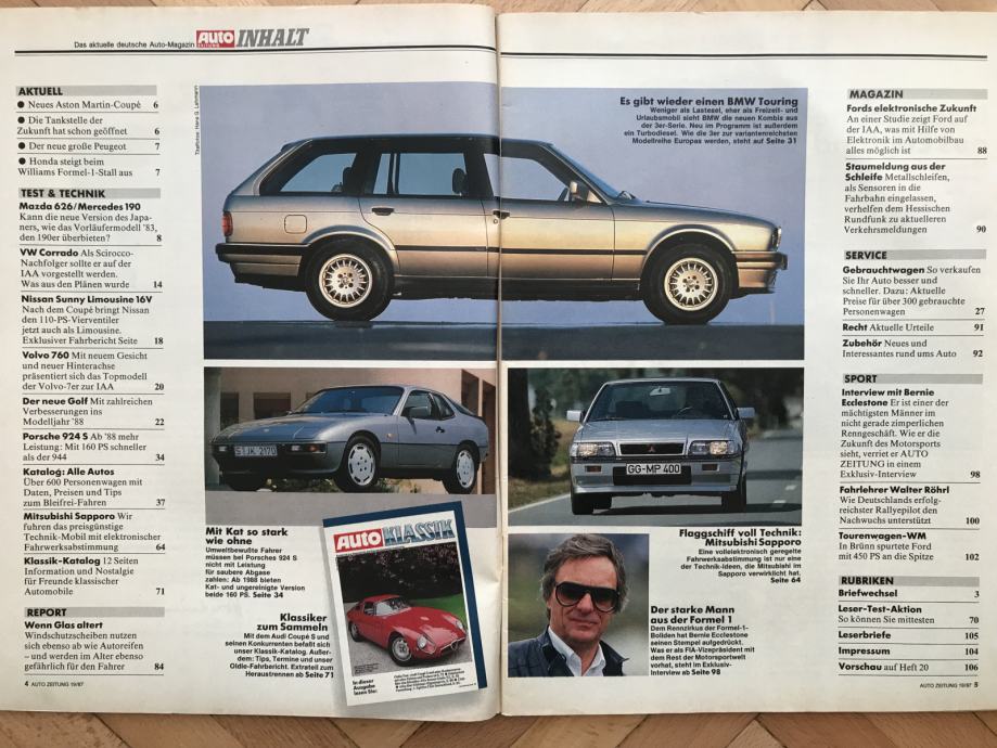 Auto zeitung`87.test: Porsche 924S +Mercedes 190 vs Mazda 626 +Golf CL