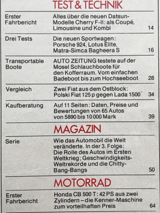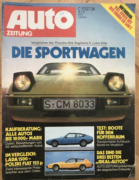 Auto Zeitung 1976. Porsche 924+BagheeraS+Lotus Elite / Lada+PolskiFiat