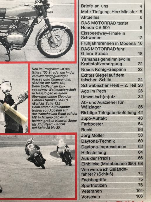 Das Motorrad 1974. test: Gilera Strada 150 na3str +Honda CB 500 na4str