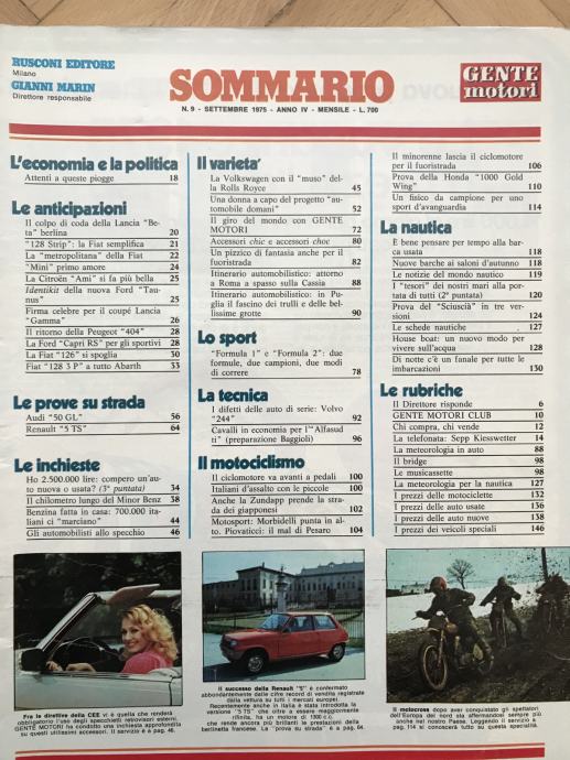 Gente motori `75. Alfasud ti tuning +Honda Goldwing +usporedba F1 i F2