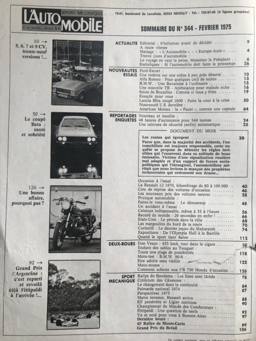 L`Automobile 1975. test: Lancia Beta Coupe 1600 +BMW R90/6 +Renault 12