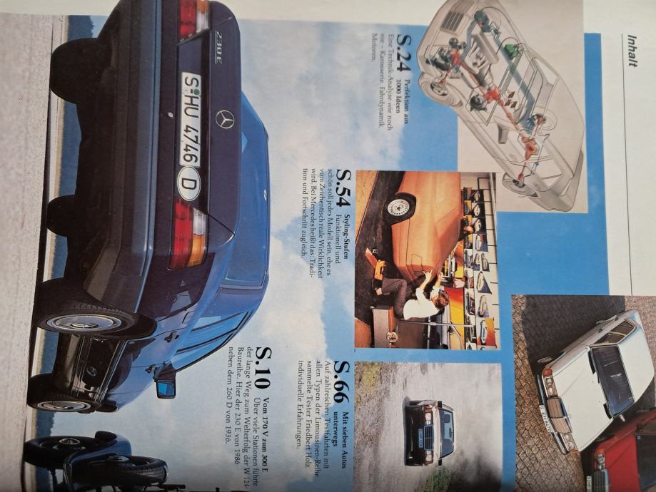 Prodajem monografiju od Mercedesa W 124 na njemačkom jeziku na 154 stranice sa puno slika , izdanje 1986. godine, očuvano, opisuje detaljni razvitak W 124 svih modela , povijesti od 170 V do W 124, usporedbu sa W 123, probu, testove, dodatnu opremu, a sadržaj je u prilogu.