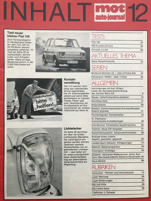 Mot auto-journal 1973.test: Porsche 914 2.0 na 3 str +Fiat 126 na 6str