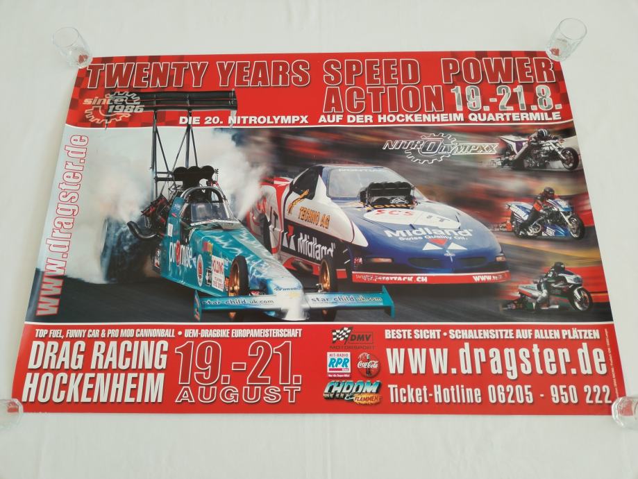 ORIGINALNI DVOSTRANI PLAKAT POSTER DRAGSTERI NA HOCKENHEIMRINGU + KALENDAR DRAGSTERI iz 2005. godine, odlično očuvan, savijen u rolnu, prodajem.