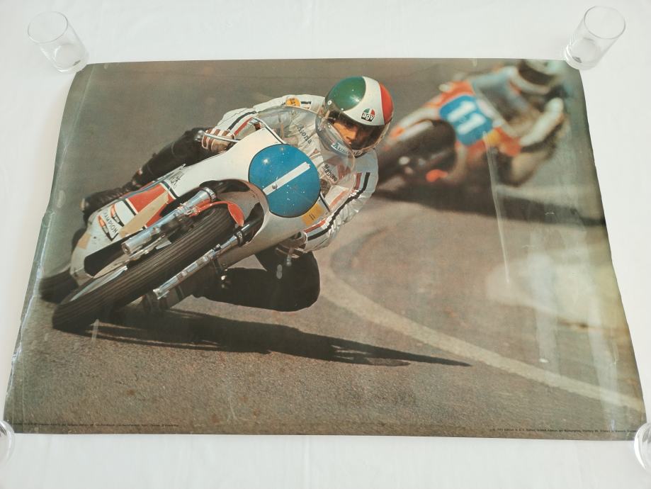 ORIGINALNI LAKIRANI PLAKAT POSTER GIACOMO AGOSTINI na YAMAHI iz 1980-ih godina, vrlo dobro očuvan, savijen u rolnu, prodajem.