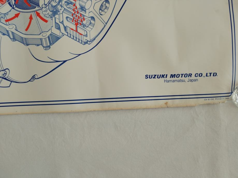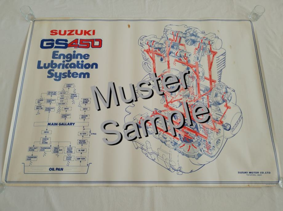 ORIGINALNI poster, plakat presjeka motora SUZUKI-ja GS 450 - SUSTAV PODMAZIVANJA MOTORA, iz 1979. godine, nije presavijen, vrlo dobro očuvan, ima par flekica od starosti koje se vide na slikama, zarolan u rolnu, prodajem. Riječi MUSTER i SAMPLE nisu vidljive na plakatu, samo su na slici u oglasu.