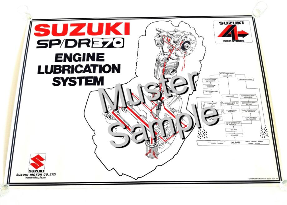 ORIGINALNI poster, plakat presjeka motora od SUZUKI SP/DR 370 (SISTEM PODMAZIVANJA MOTORA) iz 2. mj 1978. godine, nije presavijen, odlično očuvan, zarolan u rolnu, prodajem. Riječi MUSTER i SAMPLE nisu vidljive na plakatu, samo su na slici u oglasu.