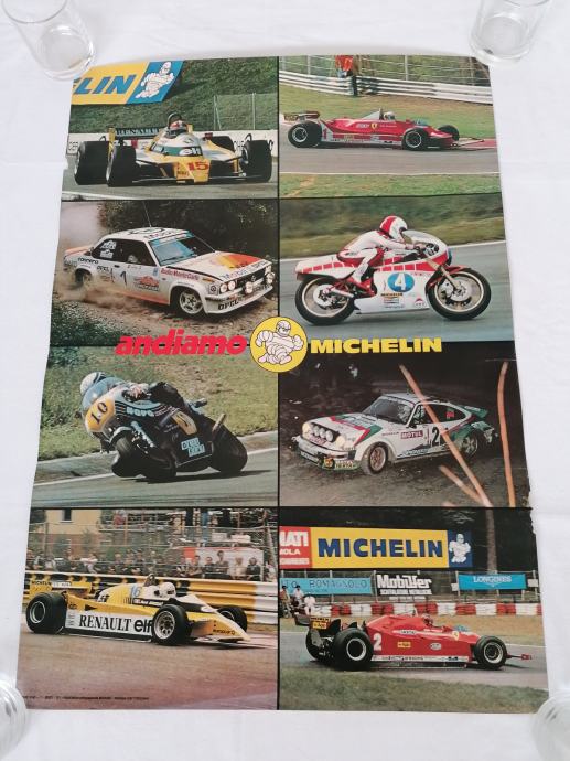 ORIGINALNI AUTO MOTO PLAKAT POSTER iz 1980-ih godina, MICHELIN, vrlo dobro očuvan, savijen u rolnu, prodajem.