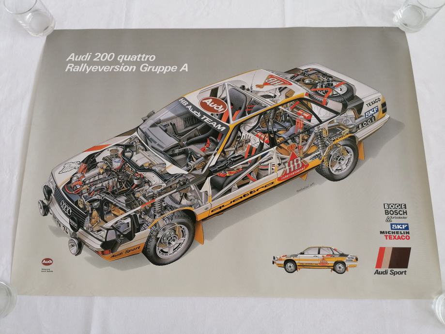ORIGINALNI PLAKAT POSTER AUDI 200 QUATRRO RALLY AUTOMOBIL 84cm x 60cm