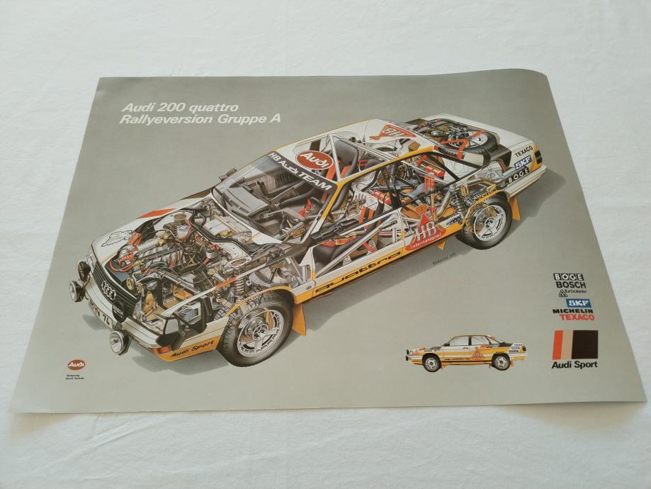 ORIGINALNI POSTER PLAKAT AUDI 200 QUATTRO RELI VERZIJA, GRUPE A - U PRESJEKU, odlično očuvan, savijen u rolnu, prodajem.