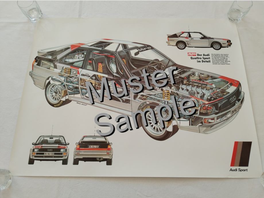 ORIGINALNI POSTER PLAKAT AUDI QUATTRO SPORT - U PRESJEKU, U DETALJIMA (Auto Zeitung), odlično očuvan, savijen u rolnu, prodajem. Riječi MUSTER i SAMPLE nisu vidljive na plakatu, samo su na slici u oglasu.