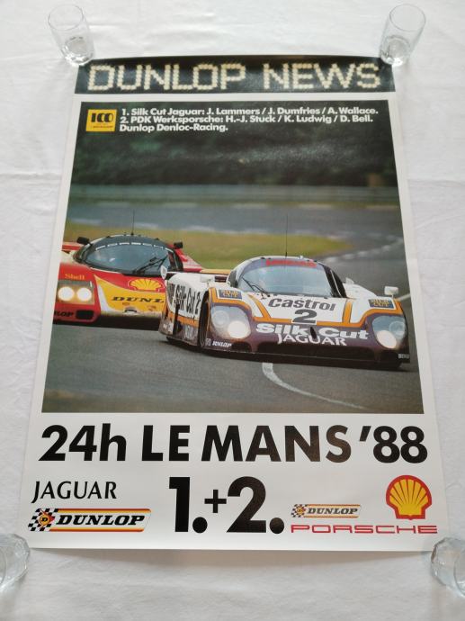 PLAKAT POSTER TRKAĆI JAGUAR + PORŠE - DUNLOP NEWS, odlično očuvan, savijen u rolnu, prodajem.