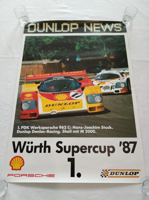 PLAKAT POSTER TRKAĆI PORŠE PORSCHE crveni - DUNLOP NEWS 60cmx42cm