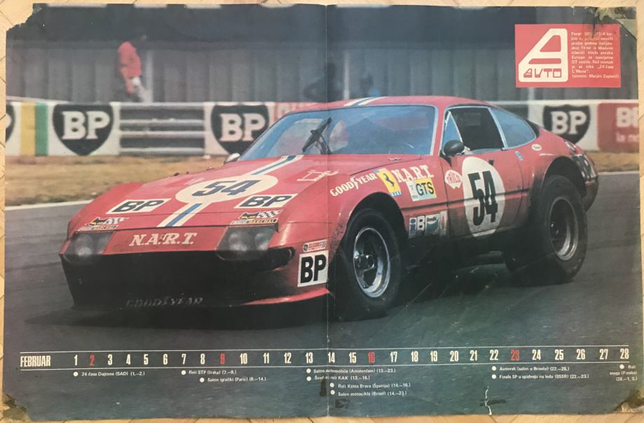 poster A3 iz auto časopisa: Ferrari 365 GTB 4 na 24 sata Le Mans