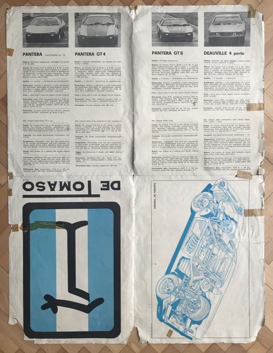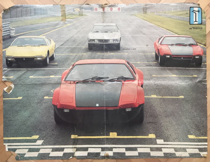 poster veličine 53x69 cm iz autočasopisa: cestovna De Tomaso Pantera +Deauville