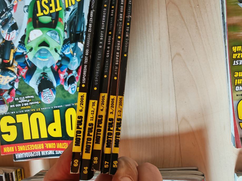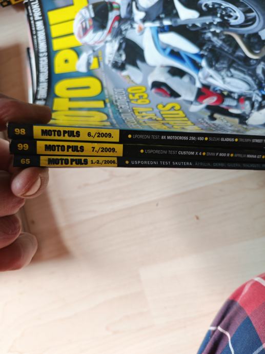 Prodajem sve sa slika, časopise Motopuls,Moto revija, Moto klub, motori u kompletu sve zajedno za 20eura.negdje oko 34 komada Motopuls, 7 komada moto revije, par komada moto kluba i 3 komada motori. Uglavnom starija izdanja. Osobno preuzimanje.