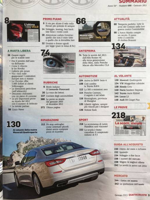 Quattroruote 1/13 100 godina Aston Martin +test: Maserati Quattroporte