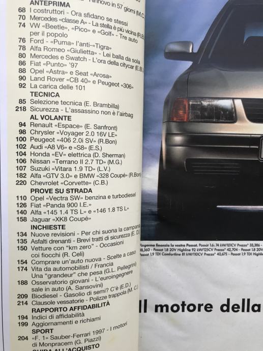 Quattroruote 1/97 test: BMW 328c vs Alfa GTV 3.0 +Jaguar XK8 +Corvette