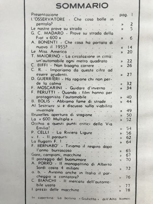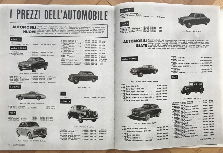 Quattroruote 1.broj iz 1956./test: Fiat600 +katalog automobila iz 1956