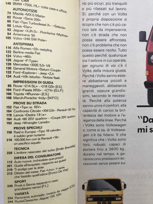 Quattroruote 11/89 pilot F1 testira Porsche-March sa710ks +Jeep +750iL