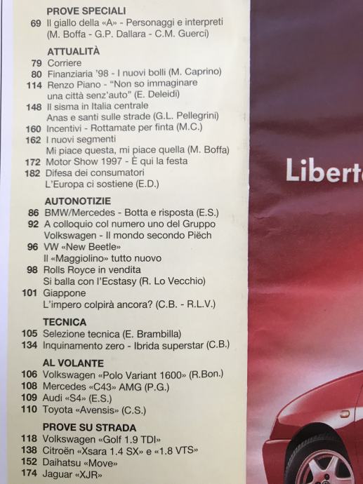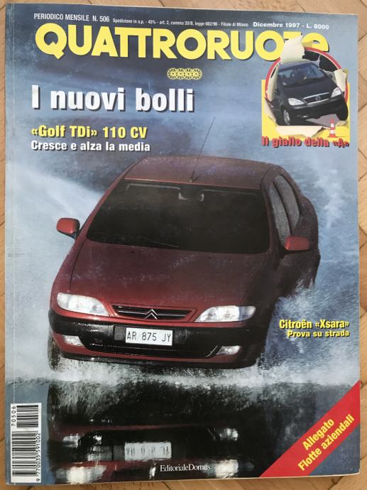Quattroruote 12/97 test:Golf IV TDI vs A3 vs A +Jaguar XJR +C43AMG +S4