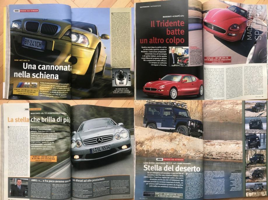 Quattroruote 2/02 test: BMW M3+AMG SL+Defender /Materazzi vs Forghieri