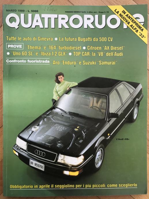 Quattroruote 3/89 pilot F1 test AudiV8 +Ferrari MondialT +Suzuki vsAro