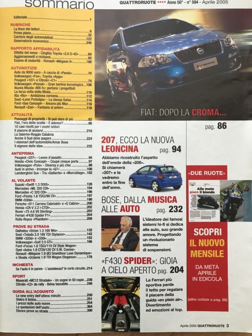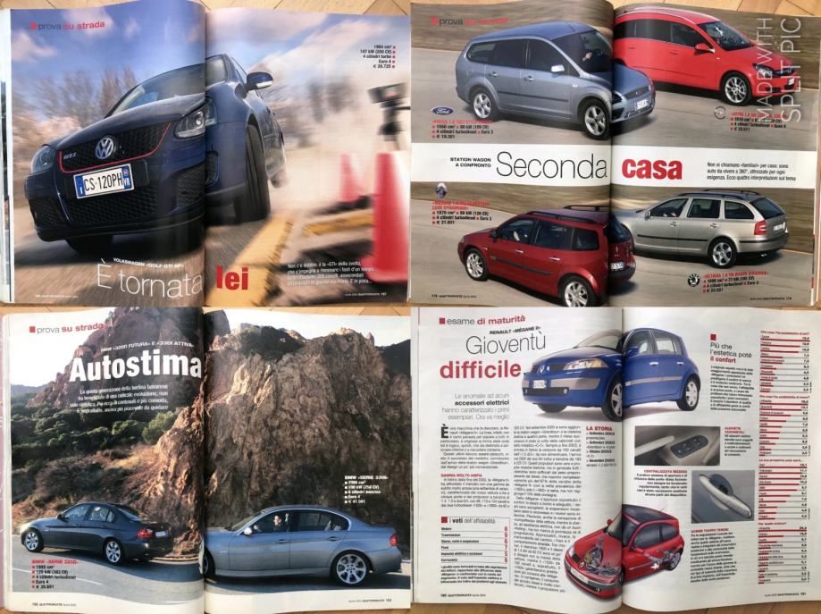 Quattroruote 4/05 test: Golf V GTI +BMW 320d+330i +Maserati MC12 +F430
