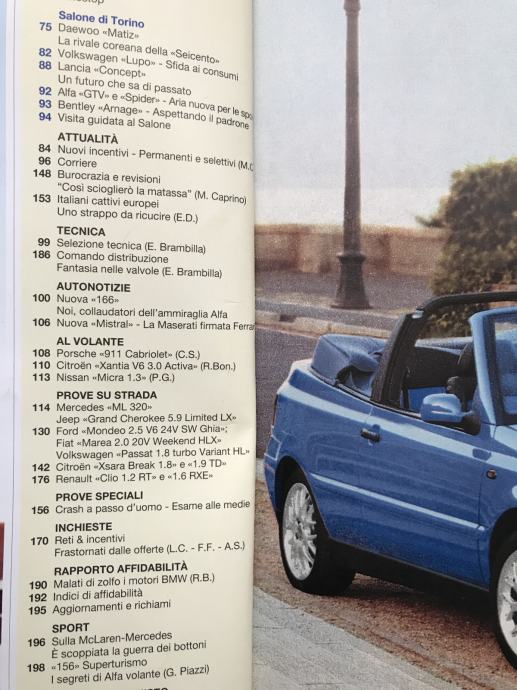 Quattroruote 5/98 pilot F1 testira Xantia V6 Activa +trkaća Alfa156 ST