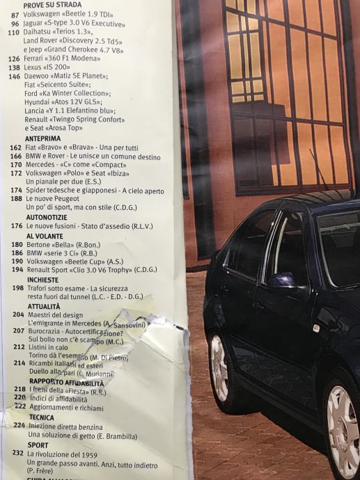 intervju na 3 str: Bruno Sacco, dizajner automobila Mercedes čak 41 godinu, od 1958. do 1999. (njegovi su modeli: prototip C111 iz `70., S klasa iz `79., SEC iz `81., 190 iz `82., 200/300 iz `84., SL iz `89., S klasa iz `91., C klasa iz `93., E klase iz `95., CLK, SLK, M klase iz `97., A i S klasa iz `98., CL iz `99.)