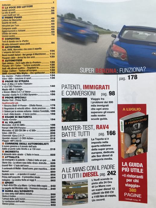 Quattroruote 6/06 test:Ferrari599 +130i vsImpreza vsR32 vsGSXR vsS2000