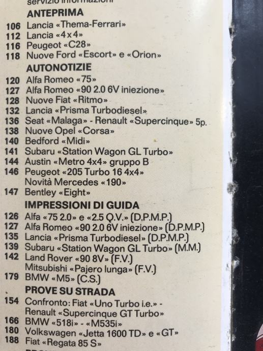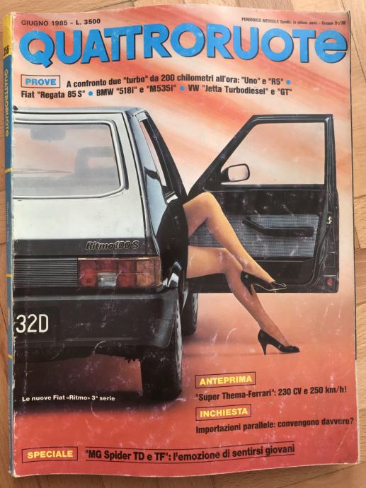 Quattroruote 6/85 pilot F1 testira BMW M5 I +FiatUno Turbo vs R5 Turbo
