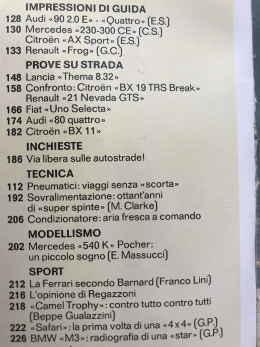 Quattroruote 6/87 piloti F1 testiraju: trkaći BMW M3 i Thema Ferrari I