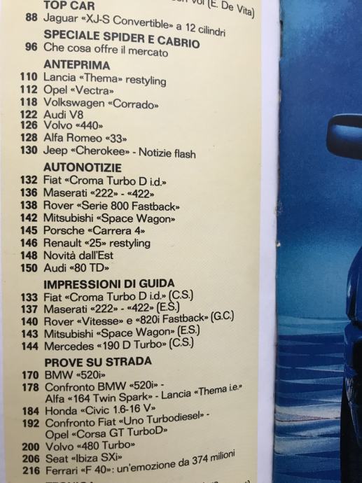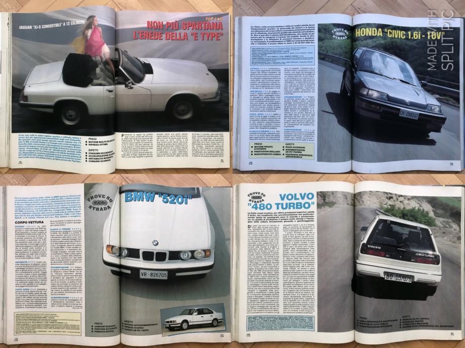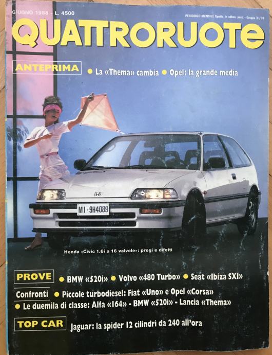 Quattroruote 6/88 test: BMW520i +Civic16V +F40 +Sauber800ks +JaguarV12
