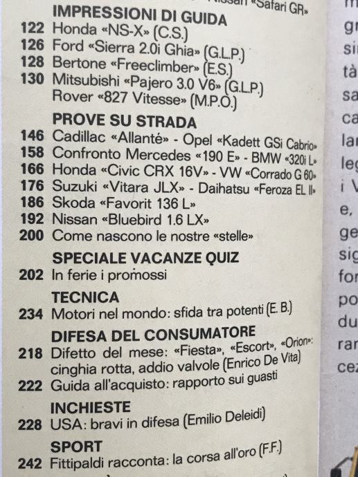 Quattroruote 7/89 8auta na usporednom testu:190E vs320i +CRX vsCorrado