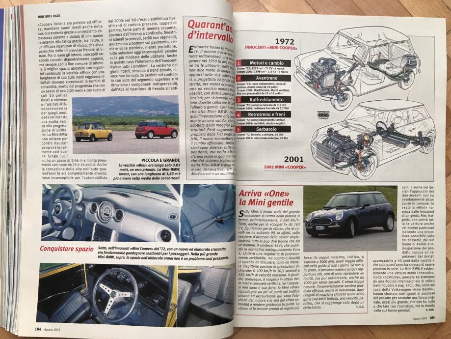 Quattroruote 8/01 test Mini Cooper 1972.vs Mini Cooper 2001.+ 316 Ti c