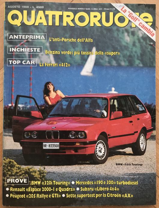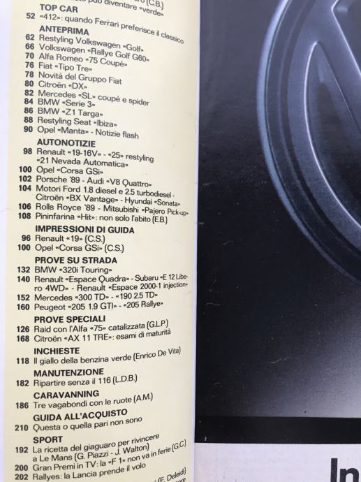 Quattroruote 8/88 test: Ferrari 412 +Peugeot 205GTI&Rallye +JaguarXjr9