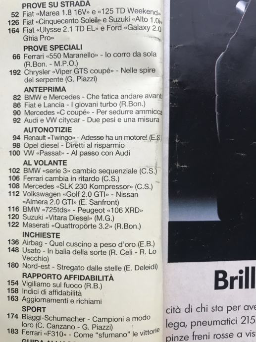 Quattroruote 8/96 test:Ferrari 550 +ViperGTS +SLK +M3 II +Golf III GTI