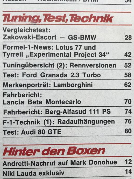 katalog tuning auta u prodaji 1975. u Njemačkoj: od ABT Audi 50 sa 115 ks do tuniranog VW Golf I sa 157 ks, na 2 str