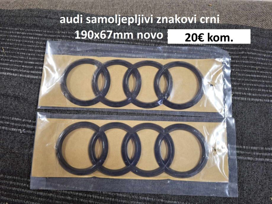 prodajem nove crne samoljepljive znakove za audi vozila dimenzije 190x67mm ima svoje ljepilo od iza samo se odlijepi folija i zalijepi cijena 20 eura komad fixno