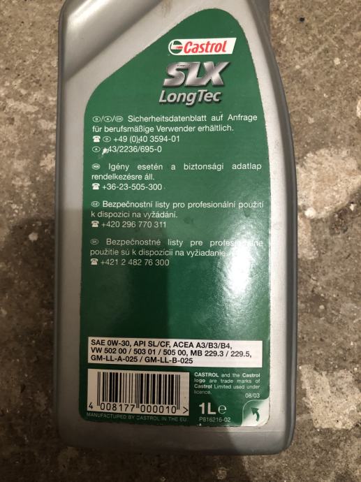 Prodajem litru Motorng ulja Castrol SLX LongTec 0W-30