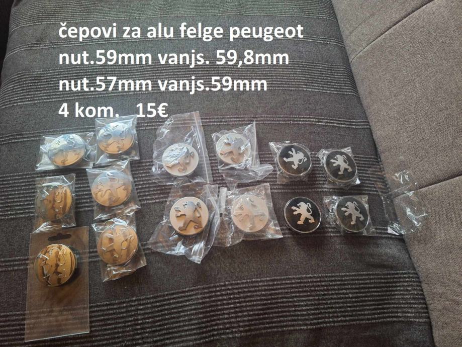 prodajem cepove za aluminijske felge za peugeot vozila cepovi su novi imam 2 dimenzije i tri razlicita dezena cepova dimenzije vidite na jednoj od slika cijena 4 komada 15 eura fixno