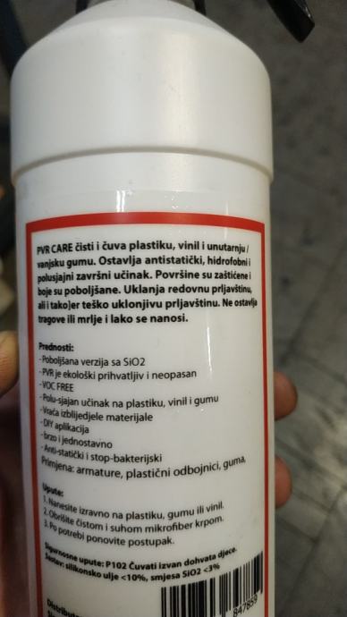 Odlično sredstvo na bazi NANO tehnologije. Služi za čišćenje regeneraciju i čuvanje plastike , vinila i gume. Za unutarnju i vanjsku upotrebu, kod automobila, ali i bilo što drugo. Ostavlja antistatički , hidrofobni i polusjajni učinak.