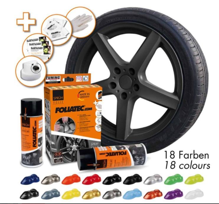 vestrana višenamjenska tekuća folija! Može se koristi na felgama, retrovizorima, plastikama interiera, u vrtu ili kući kao zaštita namještaja. Ako vam dosadi, samo ga odljepite - ne ostavlja tragove! Naši sprejevi dolaze u više od 20 različitih boja. U usporedbi sa ostalim proizvodima, tekuća folija FOLIATEC ima punu bolju neprozirnost i veću pokrivenost.